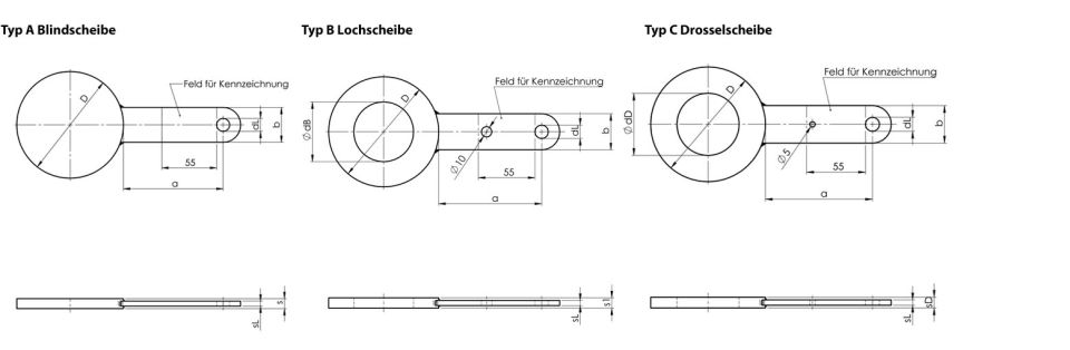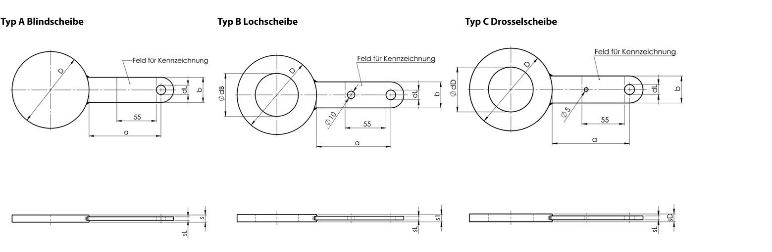 The blinds are intended for use with flanges according to DIN EN 1092-1 from nominal pressure level PN 6 to PN 160 and the sealing surface forms type A, type B, type C and type D.